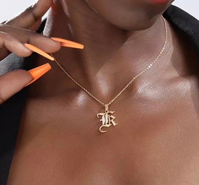 Gothic Letter Necklace Etsy De